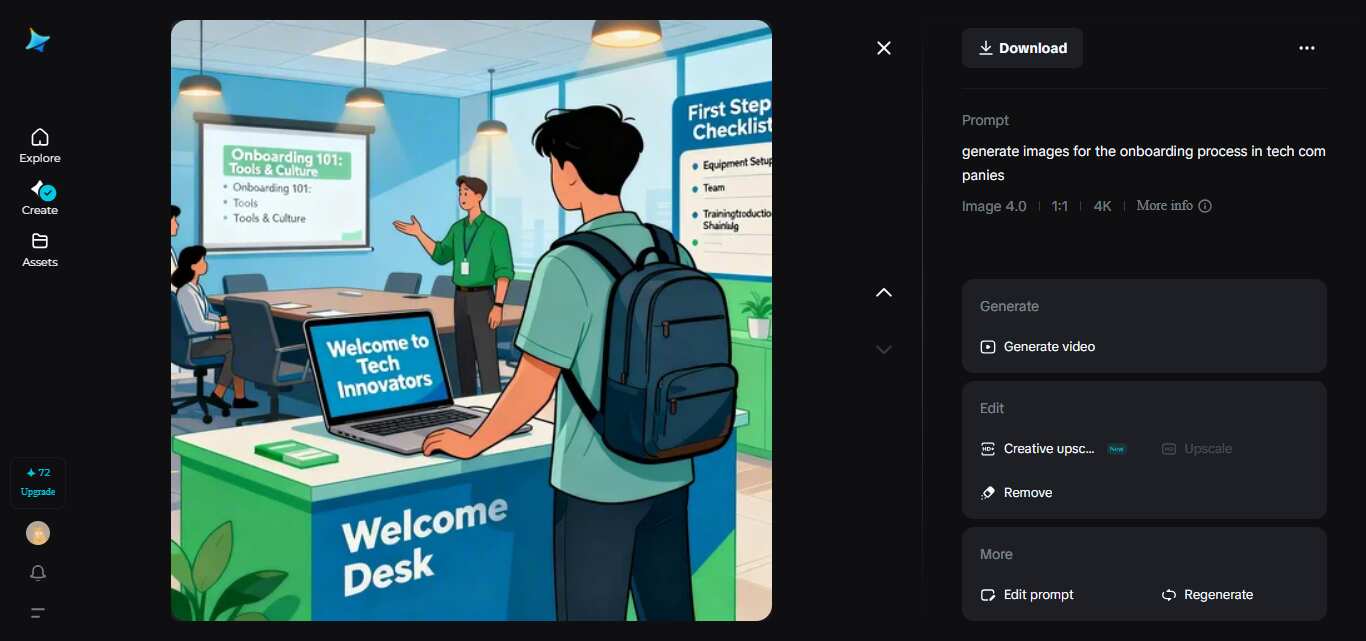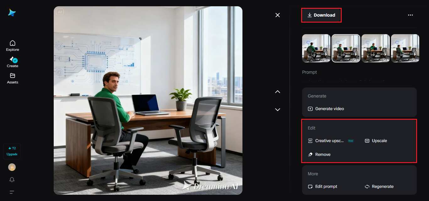 After creating your image, Dreamina will give you four original designs. You can take time to browse them all, and when the design is most preferred, use the download button on the design, and it will be saved on your computer in high quality. After that, you can upload your photo to Dreamina’s AI video generator and let its advanced models, like Seedance 1.5 Pro, animate it with audio.